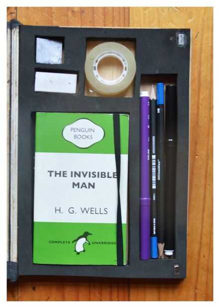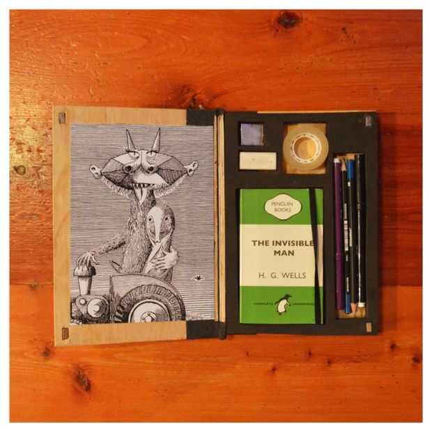 Después de algún pensamiento, decidí ir con una caja de madera, delgada. De esta forma que poder utilizarlo para apoyarse cuando está tomando notas. Quería una manera de que él podría Honda sobre su hombro cuando su caminata a lo largo, así que incluí una cinta así.