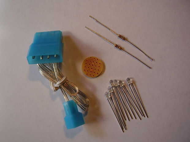 Compré los LEDs de mouser.com a menos de veinticinco centavos y las resistencias por cinco centavos cada uno. Compré el soporte de moneda Air-Tite de shawneecoin.com por un dólar. El titular de la moneda fue para una moneda pero encontré que agregó un broche bonito y simple montar la luz a cualquier superficie plana. El conector de alimentación que usé para hacer este proyecto con estaba a la izquierda sobre adaptador ventilador de un ventilador nuevo ordenador.