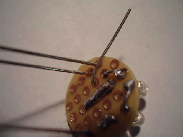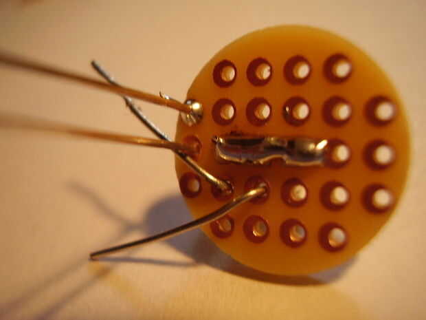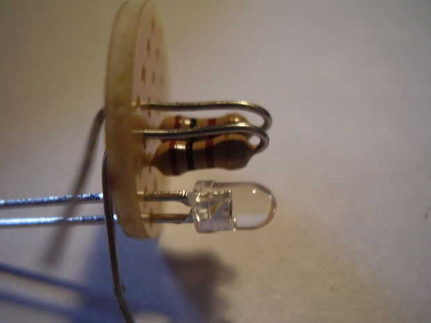 Insertar un LED como se muestra en las fotos. Posición el LED para evitar que el largo se consigue soldado al cable de resistencia.