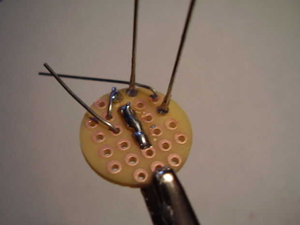 Suelde el cable resistor al cable de largo en el LED. Después de soldar, recortar el exceso de cable conduce de esta conexión con cortador de alambre.