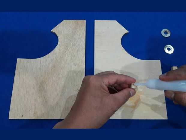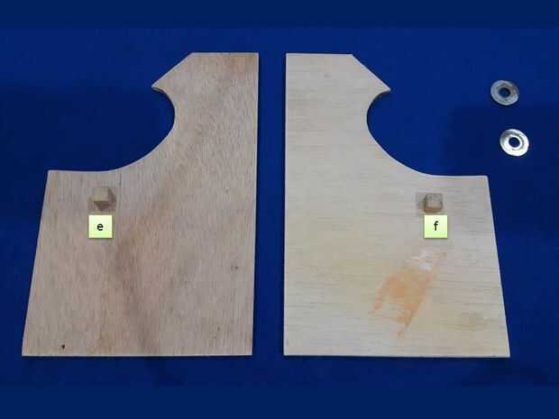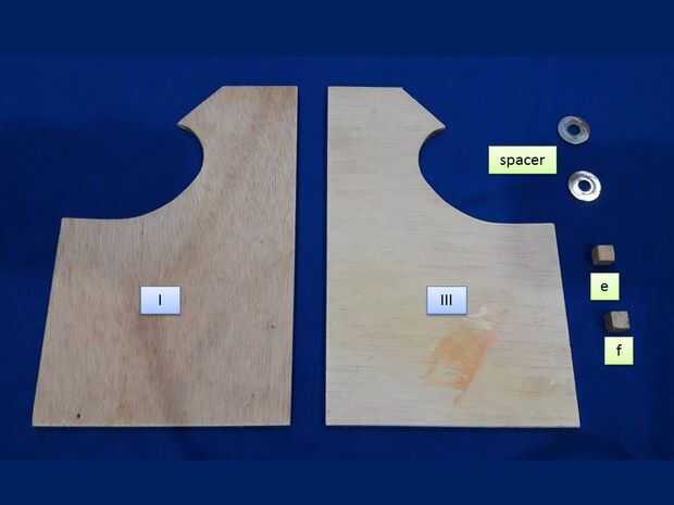 Vamos a preparar elemento 'I', 'III', 'e', 'f' y dos espaciadores para los lados del gabinete. Pegué el punto 'e', 'f' y dos espaciadores en los lados según el plan. Los espaciadores actuará como un soporte para el sostenedor de papel higiénico.