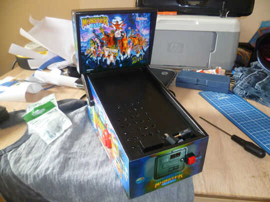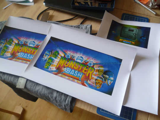 Hojas de vinilo imprimible Inkjet pueden encontrarse en ebay. Necesita varias hojas por todas las piezas. Ahora diseñar o encontrar algunas ilustraciones que usted quiere en su gabinete. Elegí Monster Bash, pero no recuerdo donde encontré las exploraciones. Cambiar el tamaño de las imágenes para colocar el armario e imprimir a las hojas de vinilo.