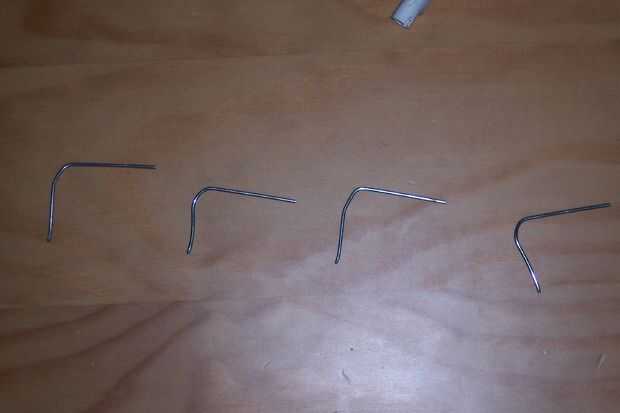 Tomar 4 clips de papel y doblar hasta las dos primeras curvas ver en la foto