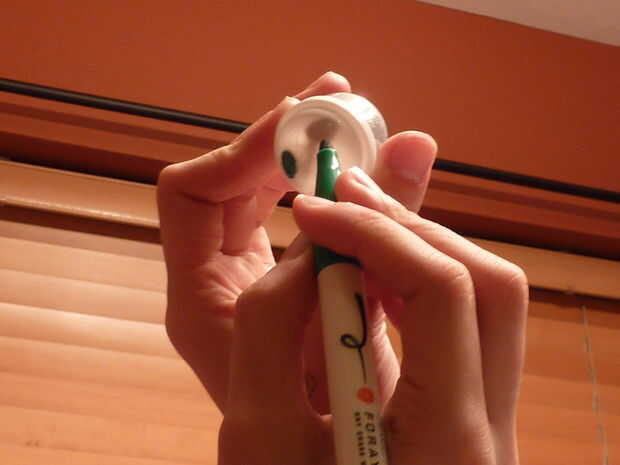 Para este paso, usted necesita pegar la base de la baratija de la tapa de la cápsula. Si el Abalorio tiene pies u otro tipo de piernas que deben colocarse concreto, poner a la derecha de baratija en la cápsula y cierre la tapa. Agitar varias veces para asegurarse la el Abalorio está en su posición más natural. Luego, la tapa mirando hacia usted, sostenga la cápsula hasta una luz y marca donde los pies son con su borrado en seco. Cuando usted toma la tapa, debe ser capaz de ver dónde están las marcas de pies desde el otro lado cuando lleva a cabo a la luz. Ahora, ya sabes donde colocarlo. Poner pegamento en las baratijas de base y sujete. Déjelo secar.
