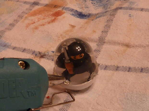 Seque bien las cápsulas cerradas. Toma tu pistola de pegamento caliente y pegamento alrededor de la tapa. Esto evitará que el agua salga. Ayuda a apuntar la punta de la pistola hacia abajo en la grieta de la tapa. Yo no he utilizado una pistola de pegamento en años, así que mi pega no es bueno. de todos modos, si usted comete un error, tratar de despegue el pegamento. Si es demasiado tarde, no te preocupes. Da carácter. ^____^