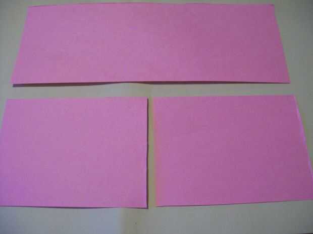 Bien, primero deberás tomar el pedazo de papel y cortar por la mitad, luego tome una mitad y corte en la mitad otra vez, como en la imagen uno. Tomar uno de los cuartos y dóblalo en cuatro partes, como en la imagen dos y cortar a lo largo de los pliegues. Ahora debe tener seis pedazos de papel de tamaño diferente, como en la foto tres.