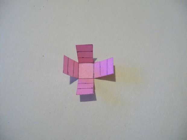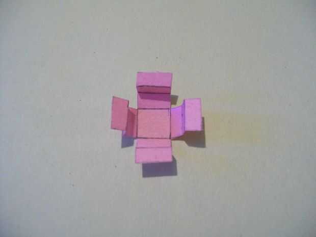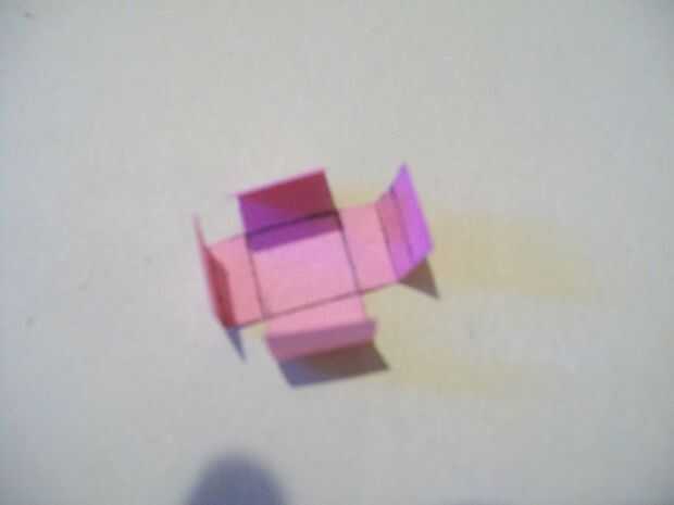 Next up: The Hole! Para empezar, usted necesita tomar otro XVI y trace una línea a través de él cuatro centímetros de largo y ponga una marca en cada uno de la imagen de lugares una muestra. Luego, poner cuatro líneas más para que se vea como la imagen dos y conectarlos todos. Ahora cortar a lo largo de las líneas exteriores y debe buscar como cuadro tres. A continuación, dibuje cuatro líneas en el cuadro de lugares cuatro demuestra. Ahora debería verse como cuadro 5. Doblarlo como en cuadros de seis, siete y ocho. Ahora termine la Copa.