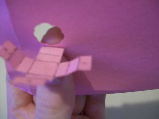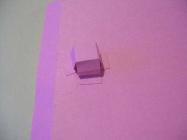 El siguiente es la rampa. Poner pegamento en la parte donde el punto en el cuadro 6. Ahora toma el borde inferior de la tarjeta, (el borde solamente no doblado) y medir cuatro y media pulgadas para arriba de él y ponga una marca. Pegar la rampa en este punto. La rampa está en.