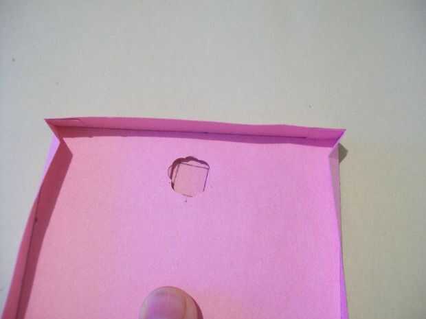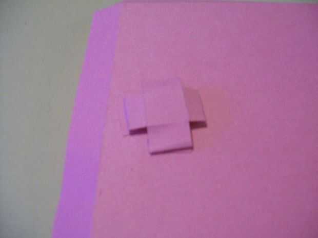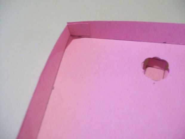 Luego, pegue las solapas de la tarjeta como en imagen once. Esto crea la frontera. una vez que se secan, doblar las esquinas como en los cuadros 12 y 13. Debe parecer cuadro 14.