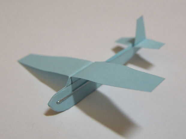 Doblar las alas hacia abajo como se indica por las líneas discontinuas. Otra vez, ser lo más preciso posible. Ajustar el estabilizador vertical por lo que es paralelo con el fuselaje de la aeronave.