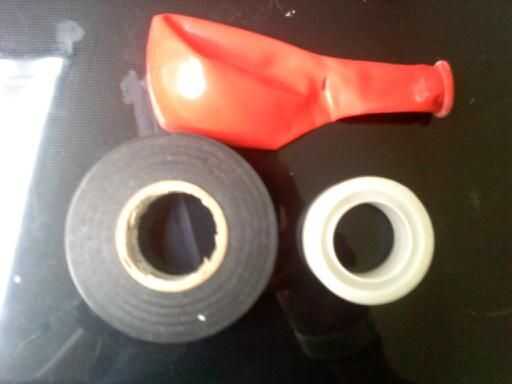 Se necesita un rollo de cinta scotch vacío, un globo de tamaño normal y cinta aislante (opcional).