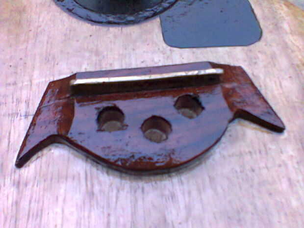 Ahora ponga el piece(2mm*5mm*2f) de acero en el primer traste y martíllelo. Cortar y puesto otra vez en el 2 º traste martillo on.repeat y así este proceso para todos.