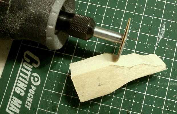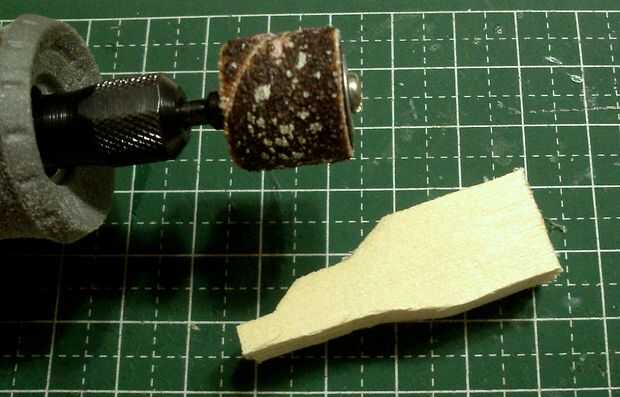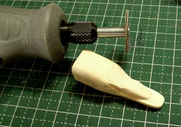 Después de dibujar las directrices en el fuselage laminado utilizando las ilustraciones y esquemas como patrones, tallar y dar forma se realizaron con los siguientes accesorios de Dremel: