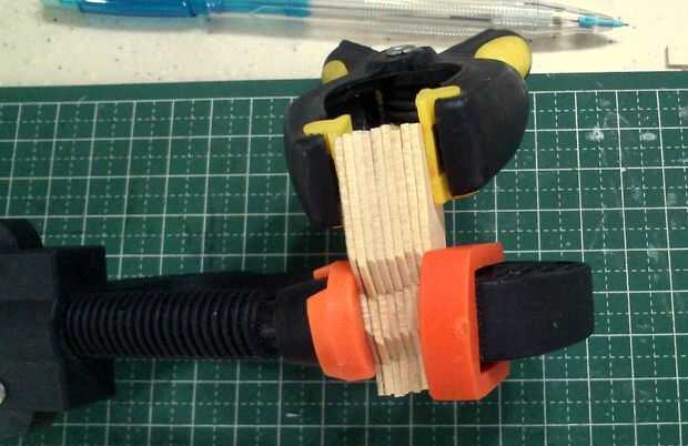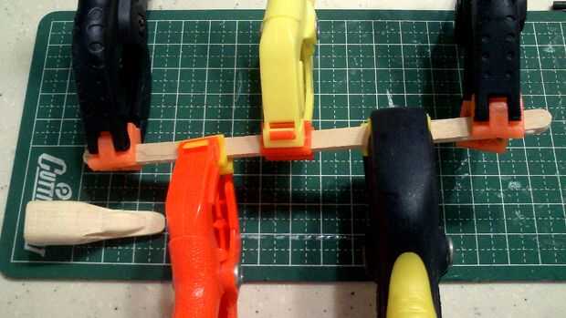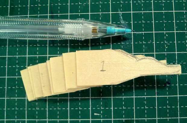 9 nueve capas de palitos bajalengua tamaño fueron laminadas para el fuselaje. La forma de cada capa fue modelada después de los esquemas de la vista lateral del paso 2.