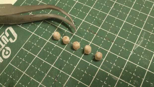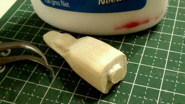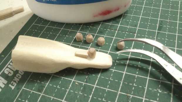 Para 5 cinco torretas, I había laminado uno (1) delgado y agitadores de café madera gruesa 1 uno y había formado en un cilindro usando un accesorio de lijadora de tambor fino. Cuidadosamente en forma final en una cúpula y cortado a la medida, repetir este paso para hacer cinco 5 torretas.