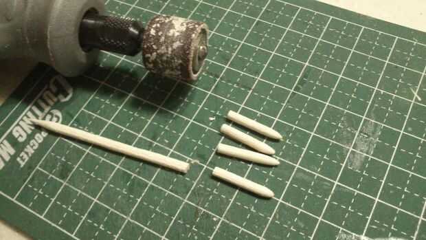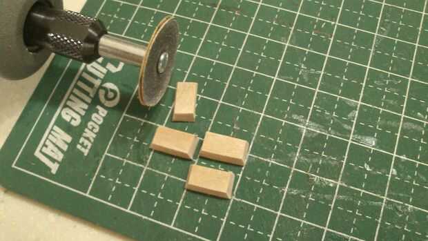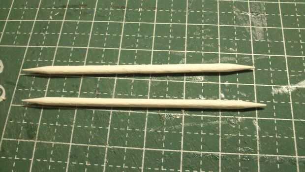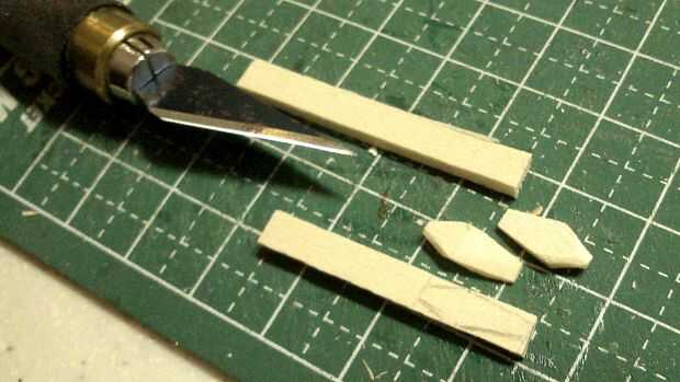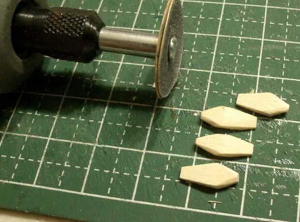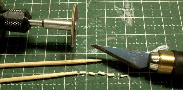 Por último, un palillo delgado hizo más delgado usando un accesorio de disco fino en una herramienta de moto MiniMite y cortar en pedazos pequeños de cuatro 4 para las bisagras de la cubierta de la "muerte de Blossom". Estos estaban pegados en el cruce de las tapas y los bordes del ala y estaban destinados a fortalecer el vínculo entre las alas y las cubiertas de "Flor de la muerte".