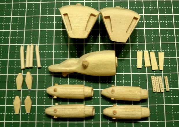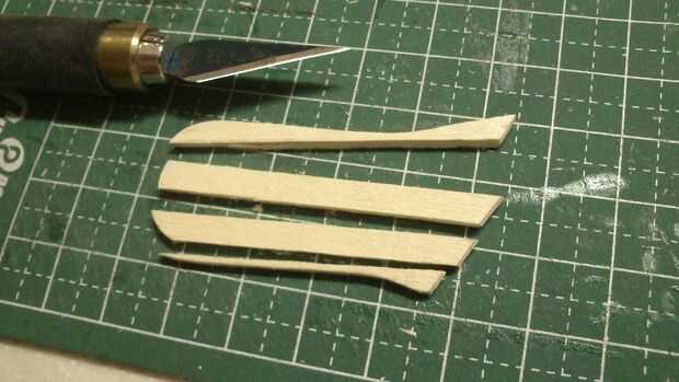 Cuatro 4 aterrizaje auges se hicieron usando un palillo de dientes redondo, corte y forma utilizando las imágenes y esquemas de parte 2 vista superior como guía. Estos fueron pegados en las uniones donde unen las alas al fuselaje.