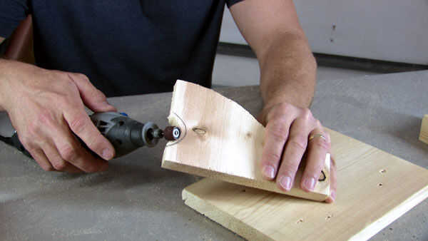 Este contorno se apoyo del cuerpo de la herramienta giratoria Dremel y ayudan a mantener en su lugar. Si tienes un Dremel o herramienta rotativa que no sea el modelo 4000, necesita moldear esta zona para caber el contorno de su modelo de Dremel. Para el tablero de madera utilizado en este proyecto será suficiente un tambor de lijar que forma el contorno (4). Si desea utilizar una madera más dura, puede que necesite utilizar un accesorio de dremel diferentes para este paso.