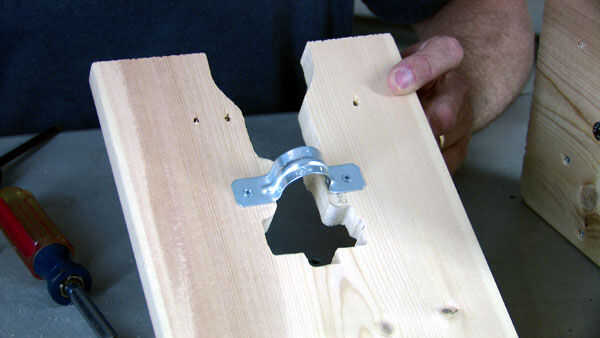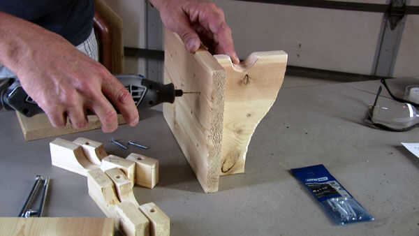 Con el #6 x 1-1/2 "tornillos, atornille los paneles laterales, soporte superior y soporte inferior al panel posterior. Es una buena idea para perforar orificios para evitar partir la madera (5/64" Taladro broca debe funcionar muy bien para esto) (7). Antes de establecer la mesa en su lugar necesita Coloque la correa de tubo de 3/4" en la parte inferior de la tapa de tabla con dos #4 x 5/8" tornillos. Los agujeros de 5/64" han sido previamente perforados para el centro de la correa debe preparar muy bien sobre el corte para la minisierra Dremel (8).