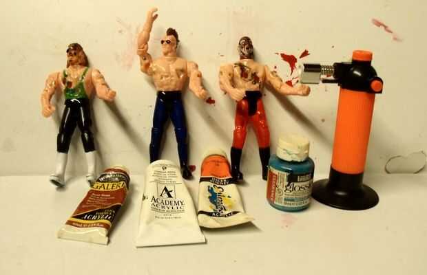 he encontrado diferentes figuras (un poco más grandes) en un dólar otro tienda, esta vez he utilizado una linterna de mano y saltó la imprimación gris va con sólo acrílicos del artista. También localicé una muñeca pequeña para ser un zombie niño