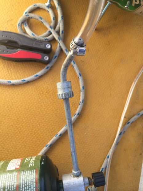 A continuación une las mangueras conexiones y tuberías, consiguió mi antorcha arrancador listo en los agujeros y subido lentamente el gas, iluminó gran y puso hacia fuera agradable llama poco. Desafortunadamente, la imagen de arriba es del flujo de accesorio de la antorcha en max. Cuadros más adelante mostrará una conexión diferente de una estufa de camping que permite mucho más propano y una llama grande.