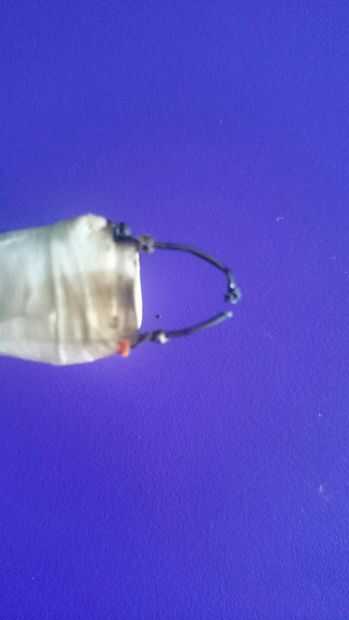 Fijar las agujas en lados opuestos del palo de madera y poner algún pegamento caliente y ejecute el hilo de nylon sobre él para hacer las agujas bien pegar en la madera. Ahora cualquiera de las agujas como un arco o curva en forma de curva. así que eso lo debe tocar otro ligeramente. pero en la imagen de arriba no toque mientras trabajaba con él le oprimo en un poco para hacer contacto de dos patillas.