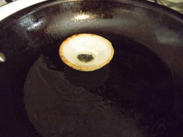 5. voltea la cebolla para que usted será capaz de romper el huevo en él.