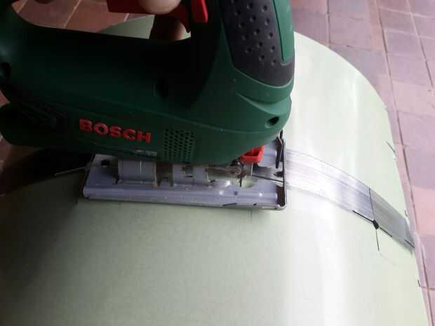 Cortar líneas rectas 4 (arriba, abajo, izquierda, derecha) del agujero perforado.