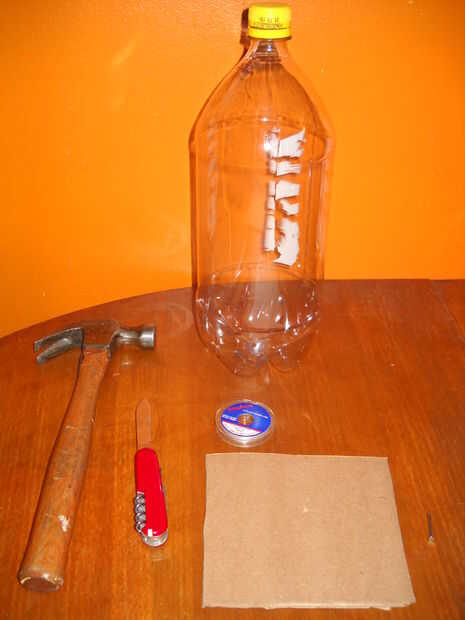 1. una botella de refresco de 2 litros, limpio, vacío, con la etiqueta quitada