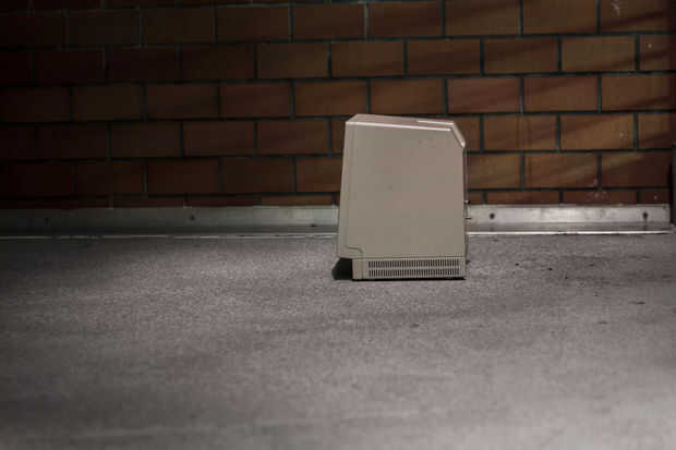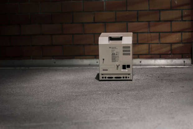 Conecte los altavoces. Enchufe el cable de alimentación y ejecutarlo a través de la espalda. Atornille juntos y ahora tienes un macintosh con pantalla táctil SE!