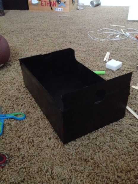 crear rápidamente un proyector con su teléfono.Paso 1: Lo que usted necesita 1. caja de zapato2. piscina de tallarines (o cualquier espuma suave)3. cámara (if mejor 30 a 60 mm)4. pegamentoPaso 2: Corte un agujero en la caja de zapato Cortar un agujer
