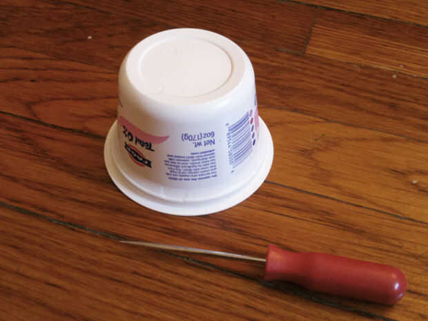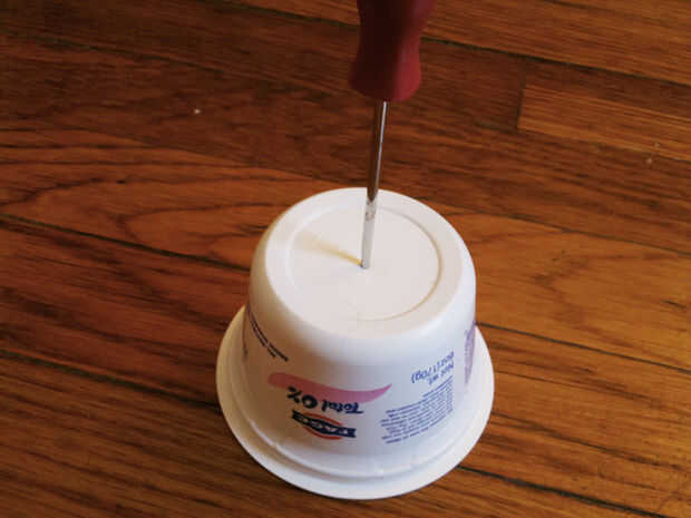 Hacer agujeros en la parte inferior del contenedor utilizando el punzón para drenar el agua del suelo.