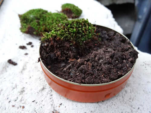 Organizar el musgo en su contenedor, romperse aparte en trozos más pequeños si es necesario. Puede utilizar unas tijeras para recortar exceso moss que no se ajusta en su contenedor.