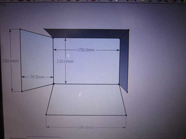 Entonces decidí qué tamaño de la base que quiero y ángulos de lo que me gusta. Puse 15 grados de inclinación. Todo lo que necesitaba era encontrar intersección lados. El diseño estaba listo para las mediciones.