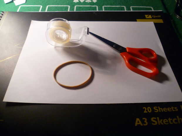 un tirachinas muy simple que es mejor utilizar tiraba gente ;) (compañeros de trabajo tal vez)Paso 1: fuentes de Para hacer esto, todo lo que necesita es: tijeras, un elástico (tiene que ser bastante fuerte), una pieza de material de desecho como car