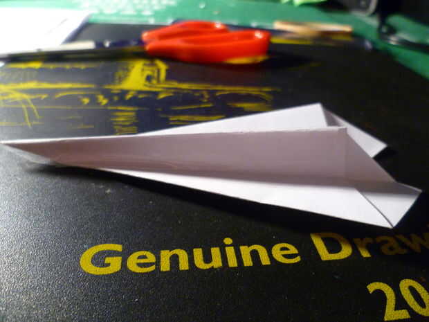 De cinta encima de la cresta de su avión y corte un pequeño espacio cerca de la nariz del avión, pero no demasiado. Luego cortar un trozo corto de cinta y colóquela encima de las alas sobre el espacio que se corta.