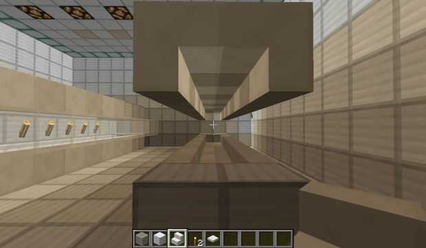 Para construir la estructura necesita unos 18 escaleras de ningún tipo. En primer lugar, colocar nueve escaleras en una fila al lado de uno. Hacer lo mismo pero tienen el siguiente conjunto de escaleras hacia la primera. En este punto, tienes dos conjunto de escaleras uno frente al otro. Coloque dos bloques de cualquier cosa en el extremo de sus filas y encima de eso las placas de presión Coloque dos. A continuación se construyendo el techo para que su artículo que le tiran no rebote demasiado alto. El siguiente paso es hacer algunas paredes para poder hacer un techo para el juego. Puede hacer esto colocando un muro alto al lado del conjunto de escaleras es de tres cuadras para que el artículo que le tiran no deje rebotar en las escaleras. Puede ir a hacer el techo colocando otra fila de escaleras pero esta vez para que ellos estén boca abajo y cada uno frente a otro como en la primera fila. Ahora se hacen con la fabricación de la estructura. Como opción adicional se pueden colocar antorchas dentro el pequeño carril que hizo o haga una de las paredes de vidrio para que otras personas pueden ver jugar.