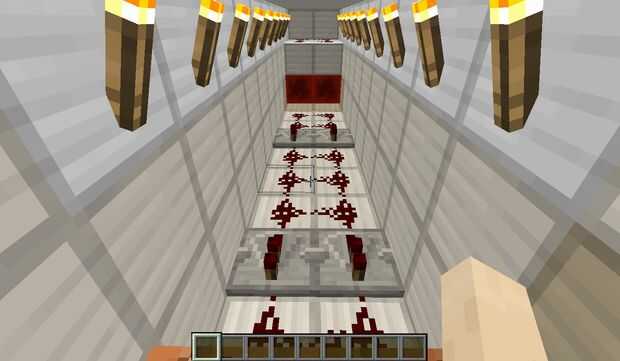 Bajo su presión placas Coloque dos pistones pegajosos y a dos cuadras de cualquier tipo sobre ellos. Luego coloque algunos Redstone sobre los bloques que colocan encima los pistones pegajosos. Esto permitirá que los pistones pegajosos activar luego coloque dos bloques de Redstone delante de tus pistones pegajosos que se empuja y se retractó. Tenemos esta configuración porque la señal de Redstone es demasiado débil de las placas de presión. Esto fue lo único que pude pensar en solucionar ese problema. Después de su esto colocar algún polvo de Redstone una cuadra del bloque de Redstone. Seguir Redstone a lo largo del túnel, parar de vez en cuando deposite un repetidor de Redstone. Cuando termines deberás acabar al comienzo del carril. Aquí puedes poner abajo un bloque de comando o dispensador para un premio. Decido colocar un bloque de mando con este comando para los fuegos artificiales.