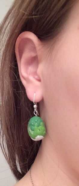 3. para los pendientes abrir los ganchos de pendiente, poner el lazo del huevo en y cierre.