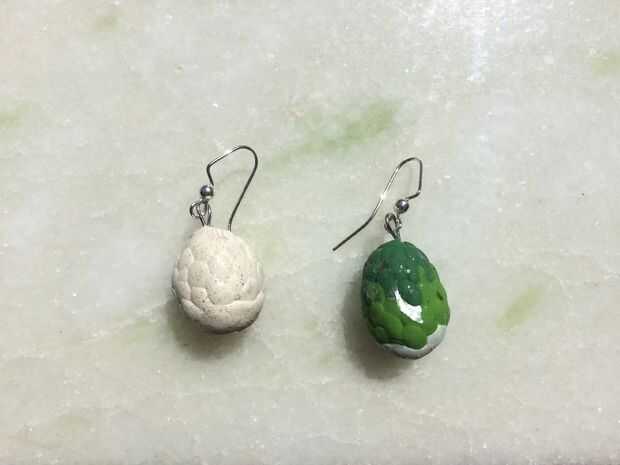 2. decida qué huevos para hacer pendientes y que para hacer el collar. Decidí usar los verdes y blancos para los pendientes y el collar rojo. Por supuesto si quieres que puedes hacer que charms para pulsera o collar o lo que desea.