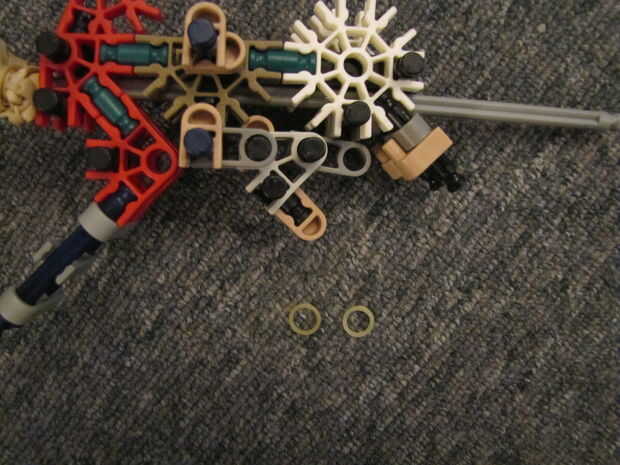 Super k'nex dulce bloque trig. pistola mag puede contener 16 redondos, casi nunca bloques, realmente estable, dulce diseño, todo lo que pueda desear. Puede tomar mucha presión, así que la pila de los elásticos. brotes azules barras la longitud de mi