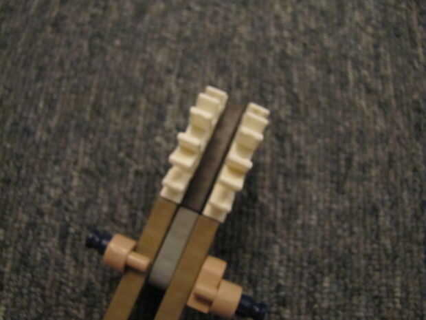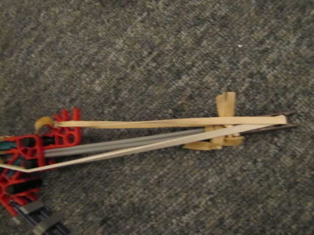 En este tutorial usted aprenderá cómo hacer una banda de goma semi automática pistola de K'NEX.Dependiendo de las bandas de goma usa, la pistola puede contener hasta 8 rondas de munición. Se dispara un tiro para cada tirón del disparador.En un anteri