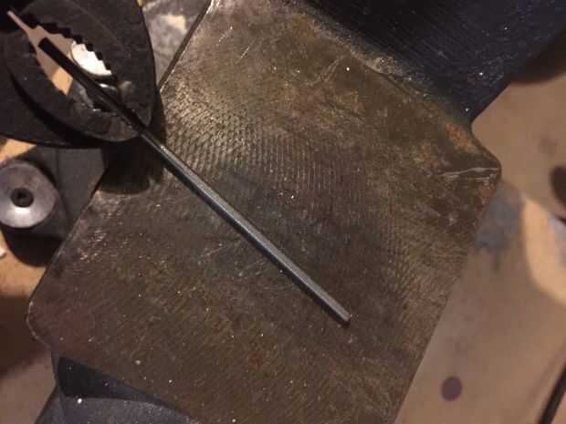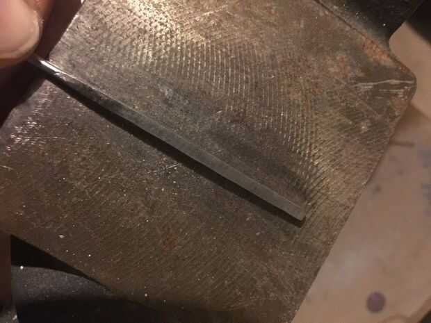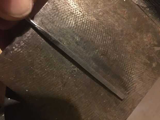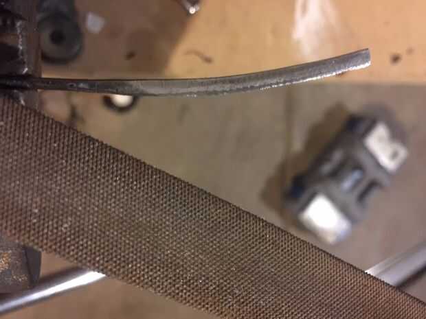 Aquí usted puede elegir afilar la hoja con cualquier método que elija, o podía esperar hasta el final del proyecto al finalizar la hoja. Hice algún trabajo de preparación en la cuchilla con una lima plana para obtener un filo inicial de la hoja. Una vez que la hoja básica, lijar todo.