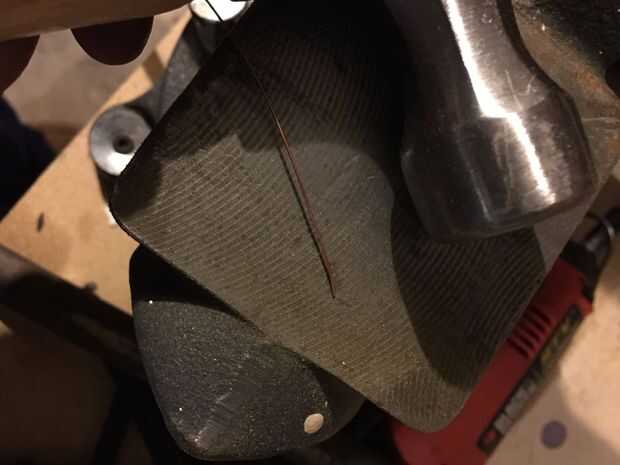 Use el martillo para aplanar los bits restantes del alambre de cobre. Esto se utilizará para mantener la guardia en forma ovalada en posición para soldar. Envuelva la pieza aplanada de alambre alrededor de la zona justo por encima de la empuñadura.