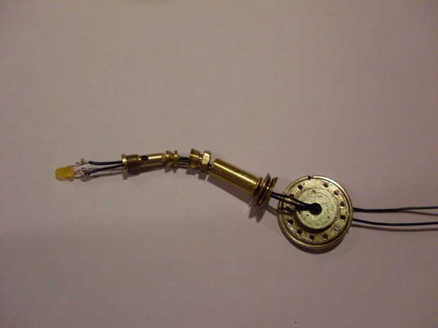 a continuación el LED a dos cables de la soldadura y empezar a ensartar todas las piezas en la misma