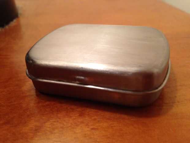 Esta lata era una lata de la menta pequeño hecho mi anunciante en una Convención. Después de lijar la llené con el fuego a partir de elementos.