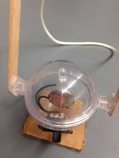 Paso 6: se conecta el cable positivo al lado positivo de la batería con cinta de cobre. La luz deberá encenderse.
