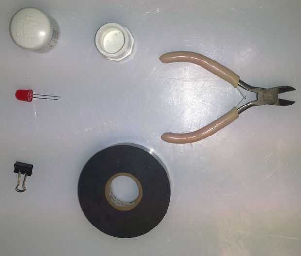 Este caso luz LED simple está hecha de un palo flexible y articulado (uso de las mujeres tratar su pelo) y un tubo de ensayo plástico, un tubo del encogimiento del calor. Todos los artículos se pueden comprar de Ebay u otra tienda muy barato. Ver fot