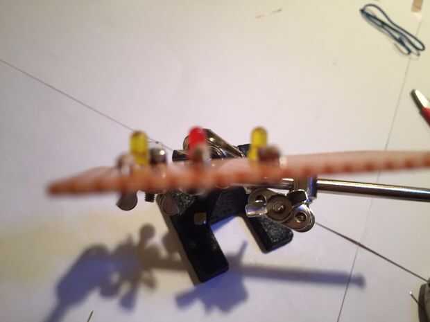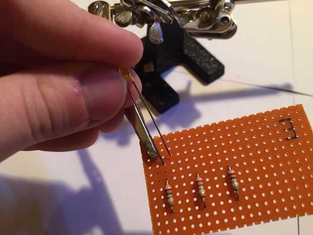 5 - controlar a 15 fotos para ver como soldar las patas positivas de los LEDs de las resistencias.