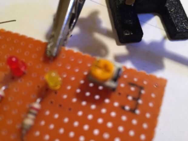 1 - tome una de las patas de uno de la resistencia que corta la última vez.